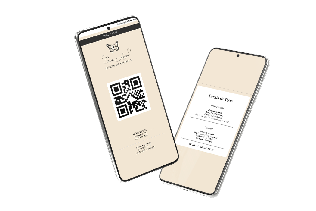 Você pode escolher a cor, utilizar a logo do seu evento e incluir informações adicionais, tudo do jeito que preferir.